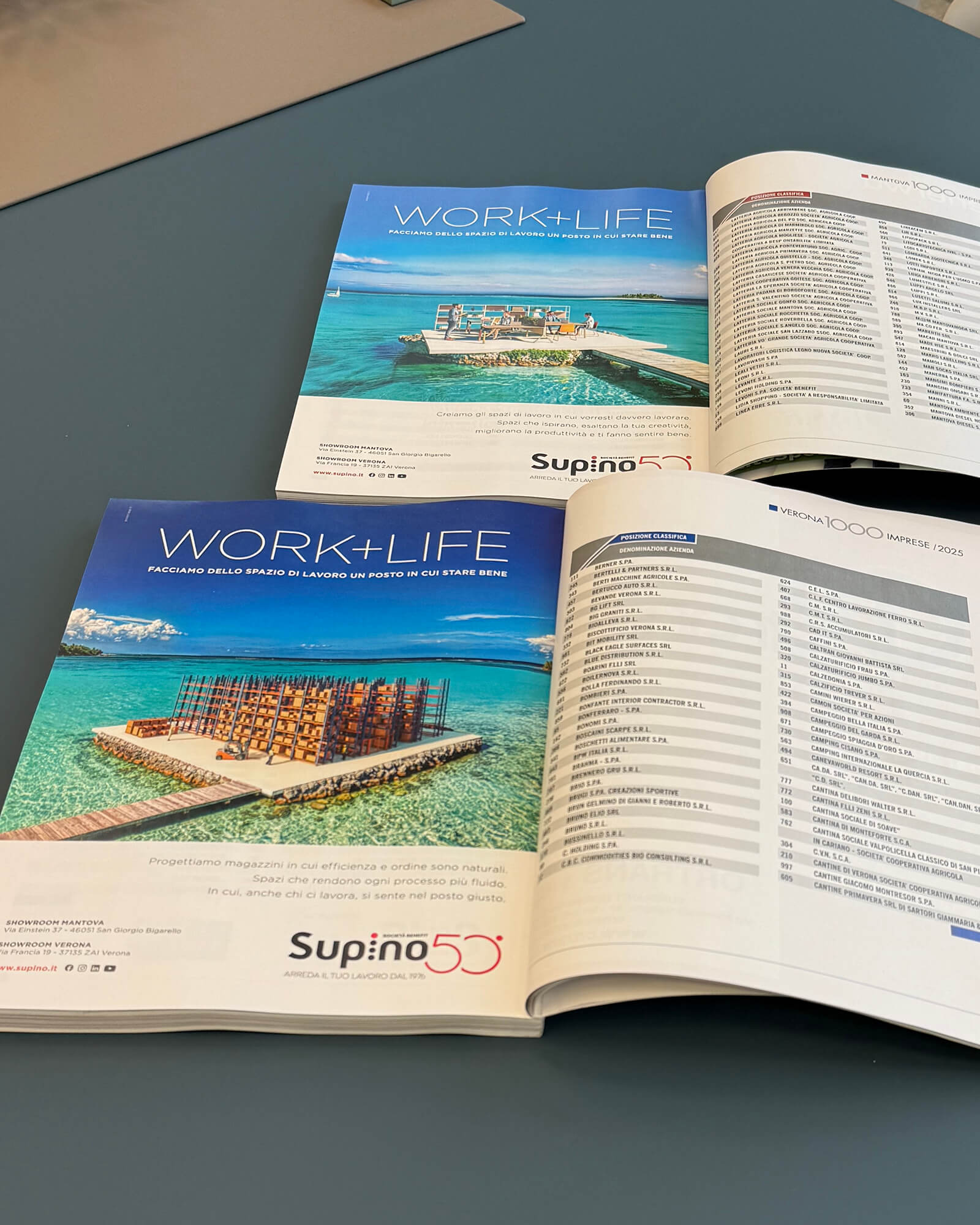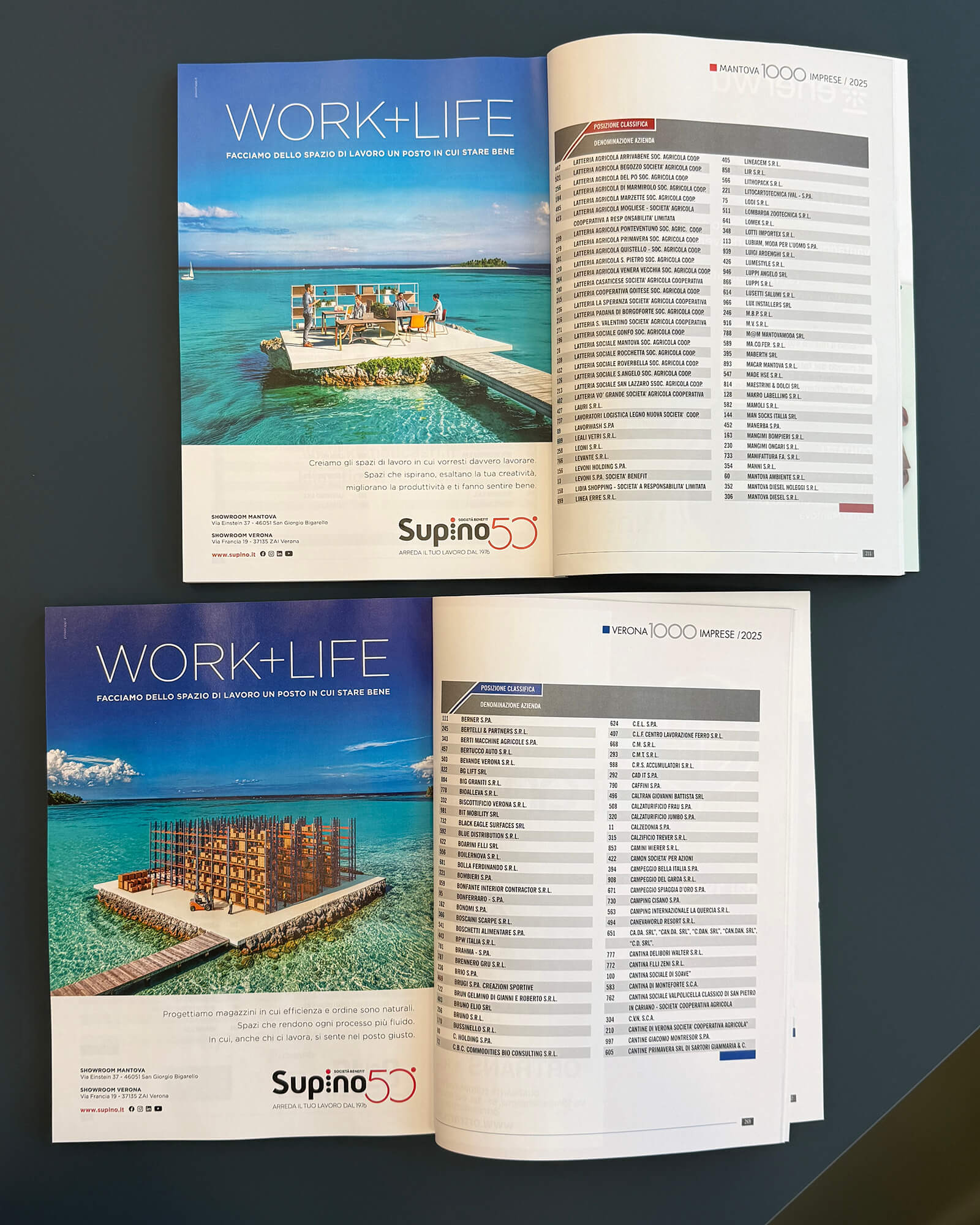 La campagna pubblicitaria per i 50 anni di Supino WORK+LIFE, è stata pubblicata anche su “1000 Imprese”, la selezione delle realtà di spicco sul territorio di Mantova e Verona.