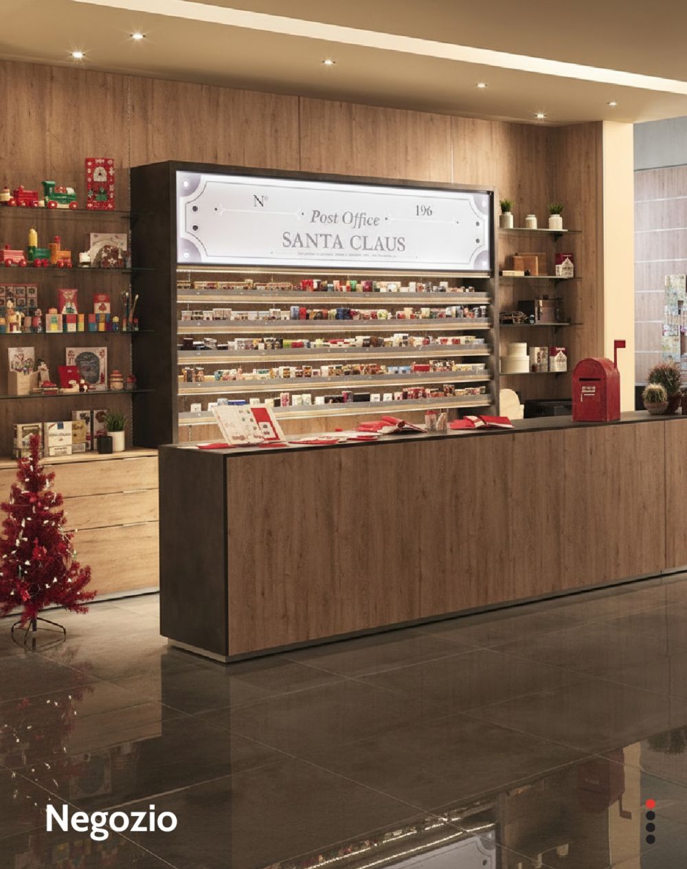 Dal suo ufficio moderno e accogliente, al magazzino ordinato ed efficiente fino al piccolo Post Office per le letterine, ogni dettaglio sarebbe studiato per unire funzionalità, design e una calda atmosfera natalizia.