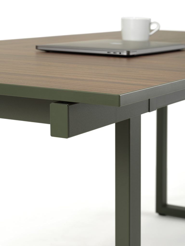 Il sistema composto da scrivanie e tavoli Be.1 è la soluzione adatta a lavori dal carattere dinamico in uffici contemporanei e consente diverse modalità di impiego e composizione, portandolo ad essere adatto anche in ambiente domestico come home office.Il segno distintivo di questa collezione è la gamba ad anello, realizzata con un tubo in acciaio a sezione rettangolare (50 mm x 30 mm) tagliato a laser e piegato. Da questo elemento base è possibile creare molteplici configurazioni collegando tra loro scrivanie e bench, aggiungendo schermi e contenitori. In questo modo è possibile far fronte alla crescente domanda di maggiore flessibilità degli ambienti ufficio, proponendosi come soluzione per supportare più modalità di lavoro contemporaneamente.Lo spessore ridotto dei piani in melaminico (18 mm) conferisce alle postazioni di lavoro un senso di leggerezza, senza pregiudicarne la robustezza e la stabilità. Le superfici di lavoro infatti poggiano su due robuste travi poste sotto piano fissate alle staffe della gamba.L’attenta ricerca tecnica del prodotto trova conferma nelle diverse soluzioni di cablaggio del piano scrivania, nei vani tecnici e nella semplicità di montaggio di tutti gli elementi satellite quali cassettiere ed elementi multifunzione.