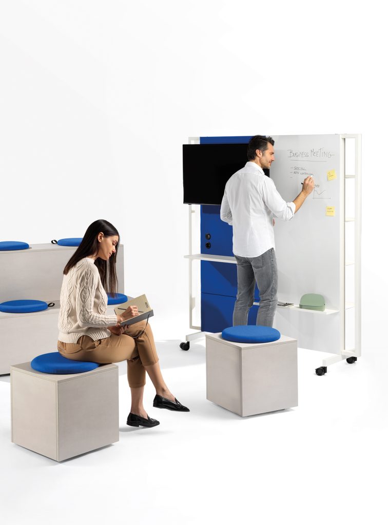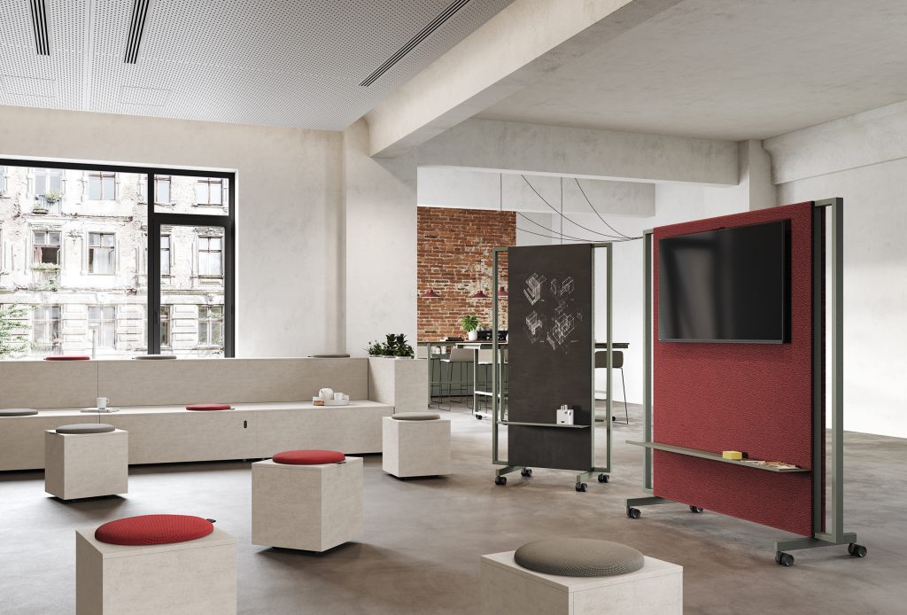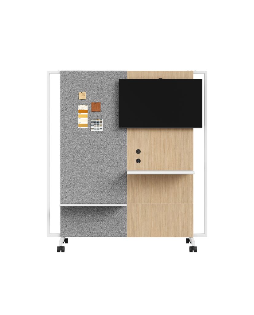 Mediawalk è un pannello divisorio mobile autoportante della collezione Be.1, che risponde perfettamente alle diverse esigenze funzionali dell’ufficio legate alla formazione e meeting. Mediawalk è costituita da una struttura in metallo personalizzabile su entrambi i lati e diventa uno strumento di progettazione di nuovi layout spaziali. Il punto di forza di Mediawalk è l’ampia configurabilità che attraverso le diverse combinazioni dei pannelli, integrati di lavagne, schermi TV e accessori complementari creano infinite soluzioni adatte ai vari contesti lavorativi.