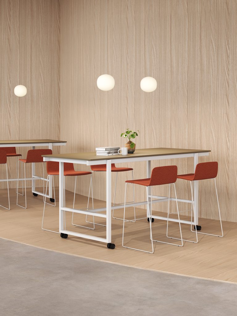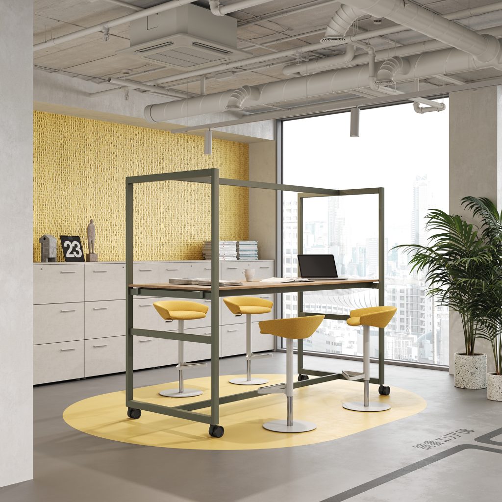 Il tavolo alto Nomad della collezione Be.1 è costituito da una struttura in tubo d’acciaio a sezione rettangolare su ruote con freno. Alla base è previsto un traverso poggiapiedi. È una scrivania mobile e accessibile che può essere spostata senza difficoltà. Il tavolo può assumere diverse identità nello spazio di lavoro per essere utilizzato come luogo di incontro, brainstorming, meeting veloci e creativi. Si presta per soluzioni che riguardano il settore ufficio, educational, coworking, biblioteche e università.