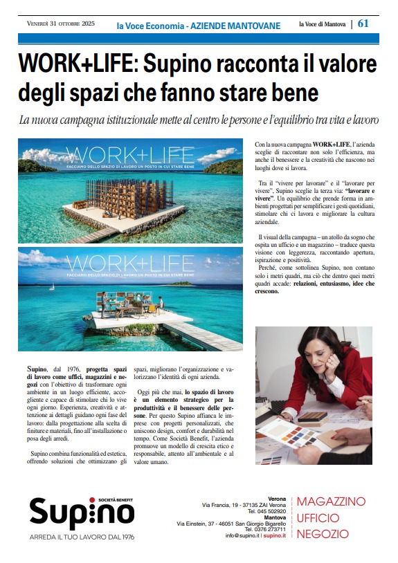 Con WORK+LIFE, Supino si conferma partner affidabile e visionario: capace di unire estetica, funzionalità e sicurezza con il benessere delle persone, per attrarre talenti e guardare al futuro con entusiasmo.